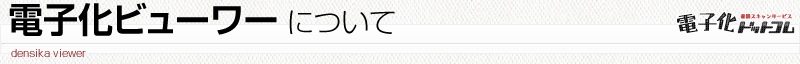 ※電子化ドットコム専用です電子化Viewerは電子化ドットコムが独自に開発し提供しているサービスです。 他社でスキャンされたPDFファイルをデータベースに登録したり、他社のサーバにアクセスする機能はありません。