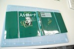 表紙カバーは手作業で裁断していきます。表紙は余白がありませんので機械での裁断では絵や文字が切れることが多々ございます。電子化された時も表紙が最初に表示されますのでなるべく裁断幅を限界まで考慮します。