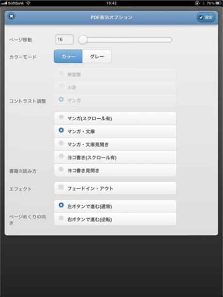 は横書きに適したモードで、表示自体は「マンガ」と同じですが、ページ送りの方向が他のモードの逆になります。