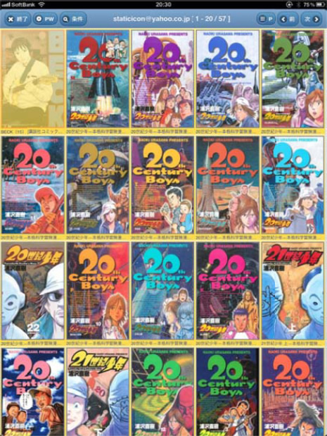 ログインすると書籍の一覧のサムネイルを5行4列、20個ずつ表示します。サムネイルをクリックするとその書籍を表示します。